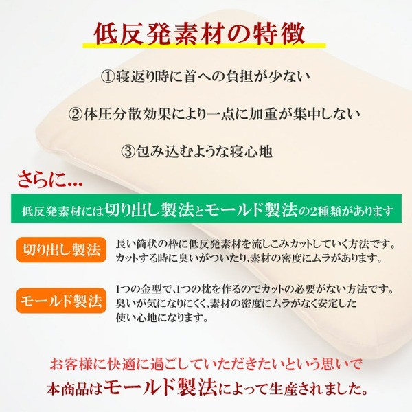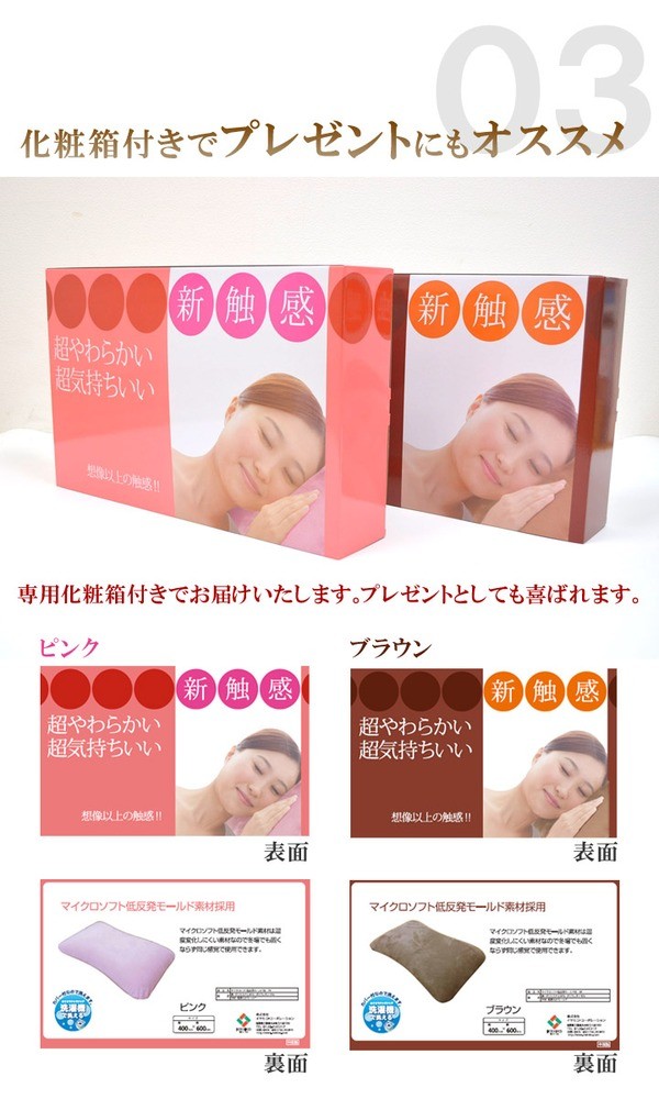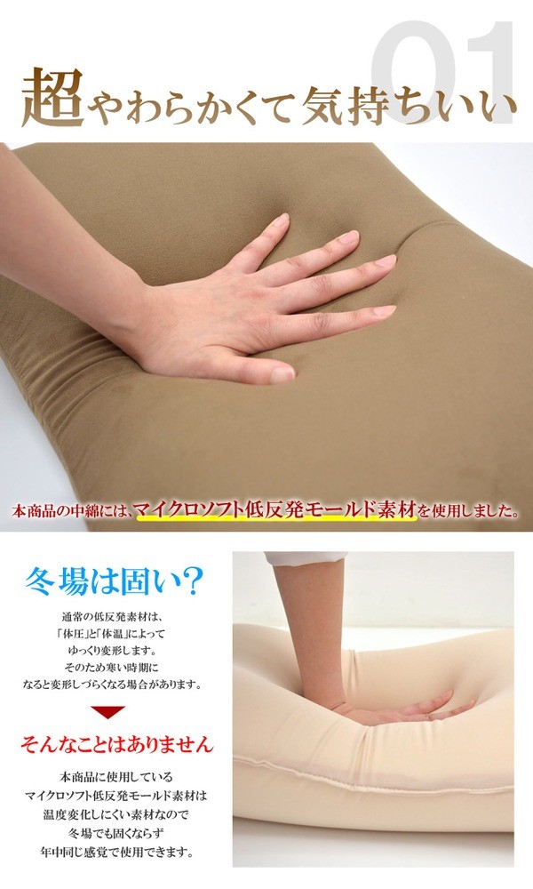 さわり心地ふわふわの低反発枕です。新触感の超やわらか素材を使用、頭を包み込む様な感触です。マイクロソフト低反発モールド素材は、温度変化しにくい素材ですので冬場でも硬くならず同じ感触で使用できます。また、カバー部分は丸洗い(洗濯ネット使用)が可能ですのでいつでも清潔にご使用できます。