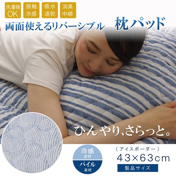 【商品名】枕パッド 洗える 冷感 涼感 接触冷感 消臭 『アイスボーダー』 約43×63cm 吸水 速乾