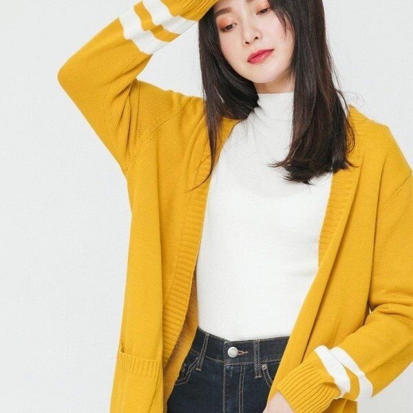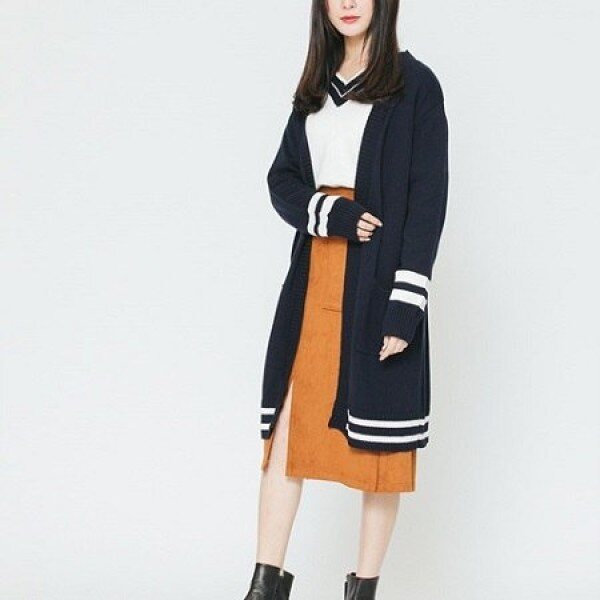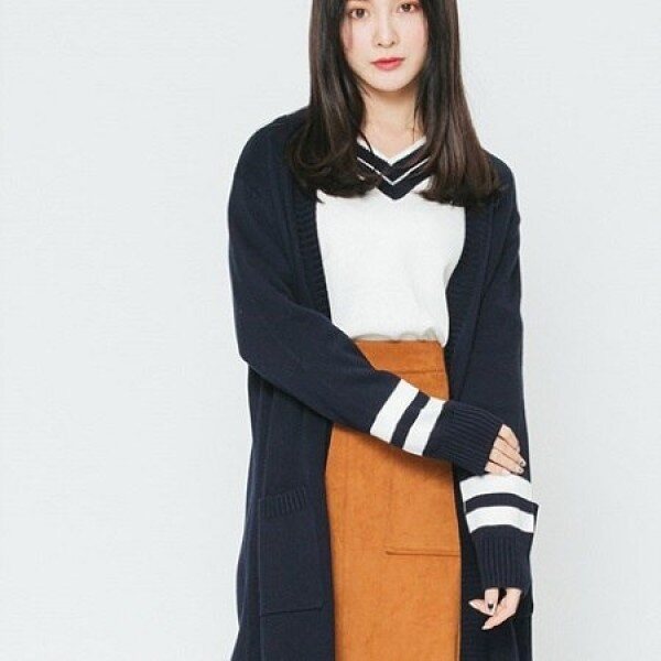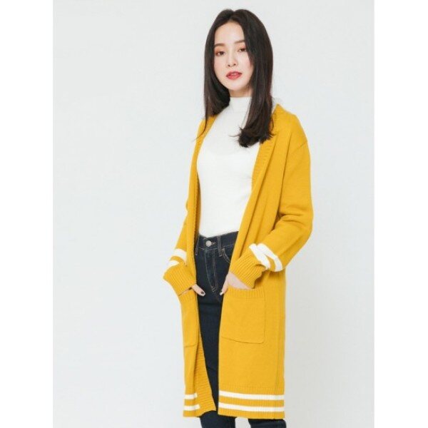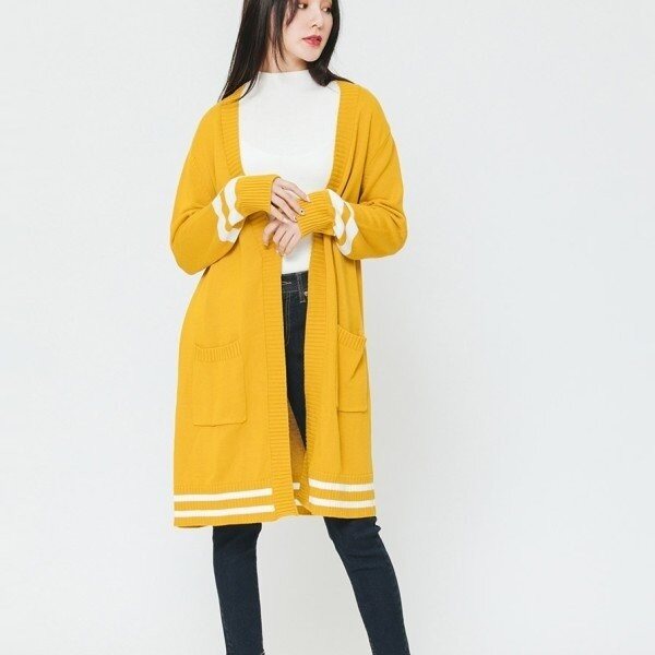 컬러포인트 V넥 롱가디건