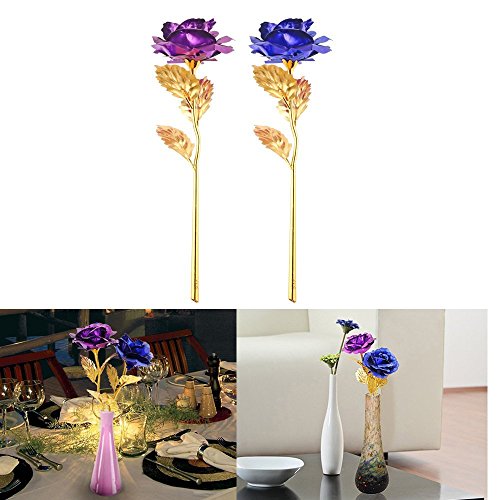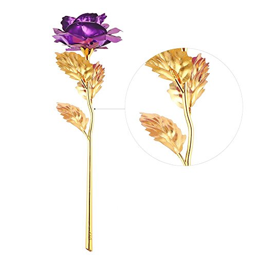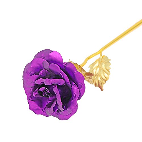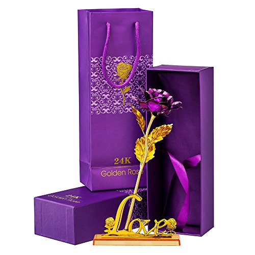Valentines Gifts for Her, Gold Foil Purple Rose Flower, Christmas Wedding Mothers Day Anniversary Gift