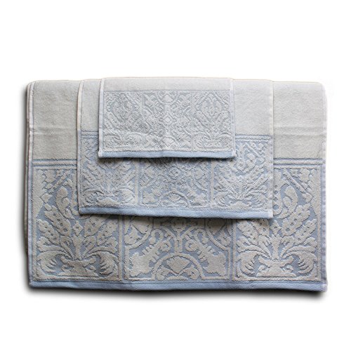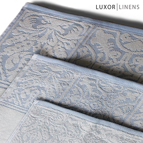 Luxor Linens - 100% Cotton 3 PC Absorbent Jacquard Towel Set, Hotel Luxury- 1 Bath Towel, 1 Hand Towel, 1 Wash Cloth - White/Aquamarine
