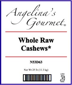 -. Title : Whole Raw Cashews, 25 Lb Bag