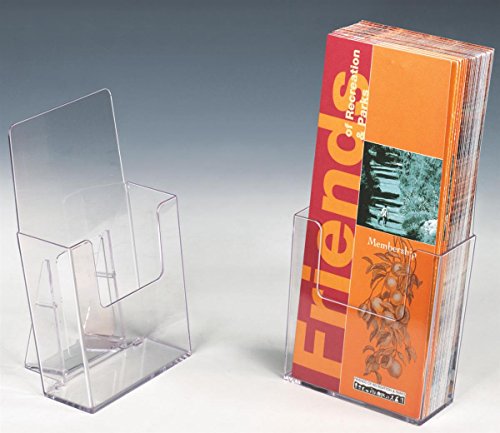 Displays2go Set of 60, Clear Plastic Brochure Holders for 4w Literature, Slant-Back Tabletop Leaflet Dispensers with Low-Cut Front Panel (BRSD40)