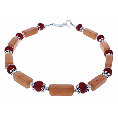 -. Title : Womens Red Aventurine, Carnelian & Sterling Silver Ladies Beaded Gemstone Anklet with Daisies