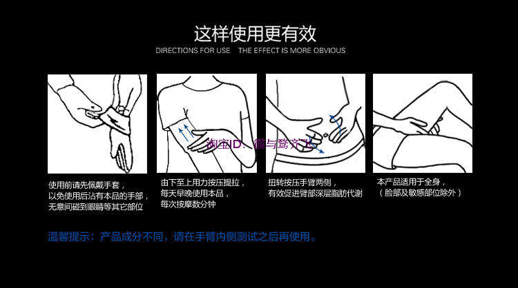 2, with the palm circle massage the abdomen, and massage the waist 3-5 minutes until the product is absorbed by the skin is completed;