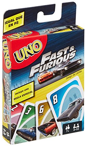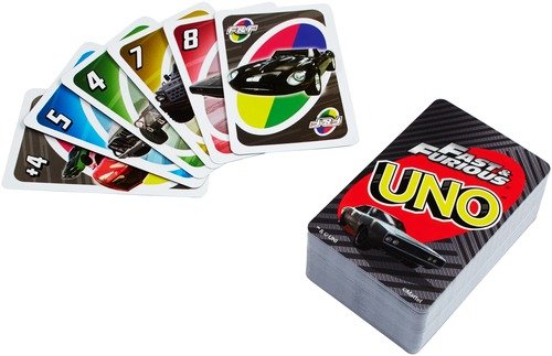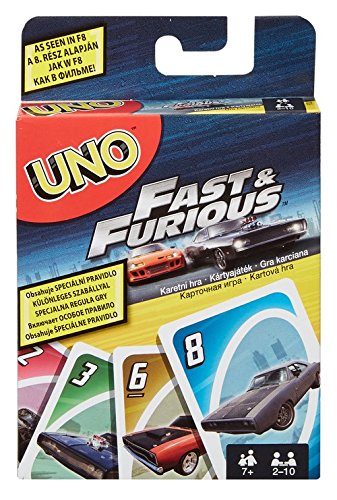 -. Binding : Toy -. Brand : Mattel -. EAN : 0887961469677 -. Feature : The classic matching card game, now with a Fast and Furious theme! / Players take turns matching one of their cards with the color or number card shown on the top of the deck / Score points by being the first to get rid of all the cards in your hand / First player or team to 500 wins / Includes special Fast & Furious wild card and two customizable cards for even more intense play! -. IsAdultProduct : 0 -. Label : Mattel -. Manufacturer : Mattel -. Model : FDJ13 -. MPN : FDJ13 -. PackageQuantity : 1 -. PartNumber : FDJ13 -. ProductGroup : Toy -. ProductTypeName : TOYS_AND_GAMES -. Publisher : Mattel -. Studio : Mattel -. Title : Uno Fast & Furious Card Game -. UPC : 887961469677 -. Warranty : 1 year warranty against manufacturer defects