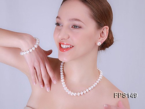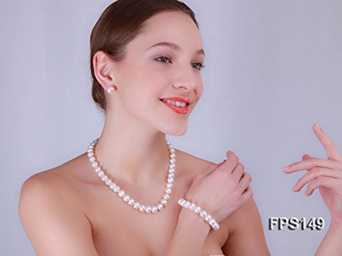 -. Title : JYX Freshwater Pearl Necklace Set 11-12mm White Pearl Necklace Bracelet and Earrings Jewelry Set