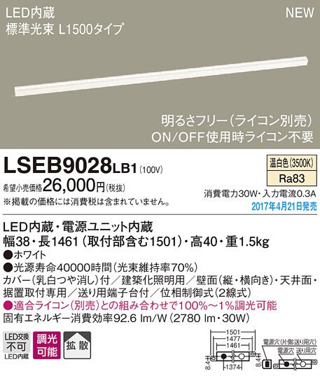 ●寸法(mm):幅38・長1461(取付部含む1501)・高40