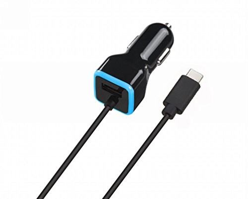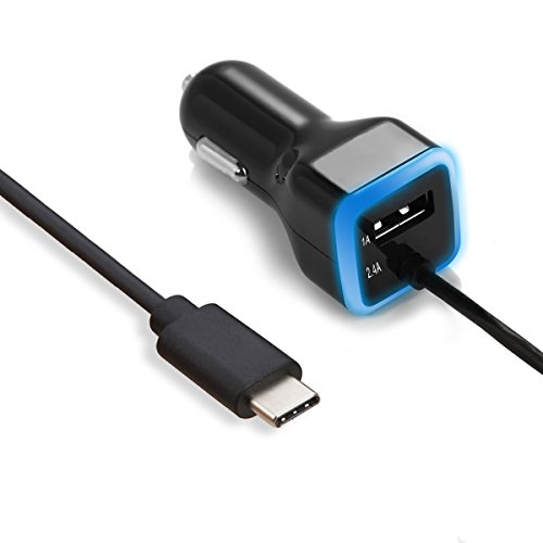 USB Type C Car Charger, Gembonics Dual USB Car Charger with USB C Cable for Galaxy Note 8, S8, S8 Plus LG G6, G5, HTC 10, Samsung, iPhone, iPad and more (Black)