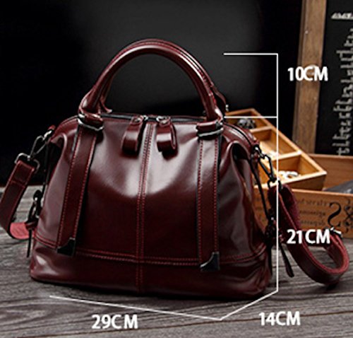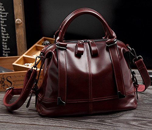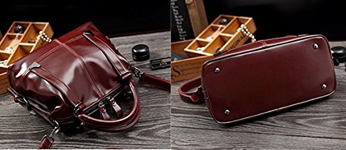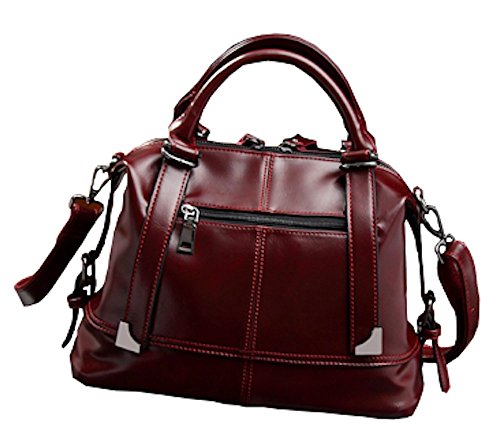 Leather Bag for Women Tote Sholder Cross-body zipper (Wine-red)