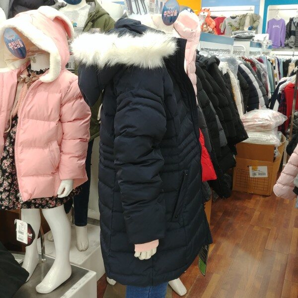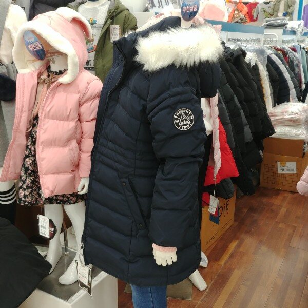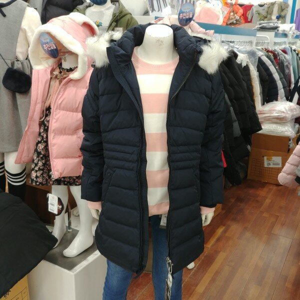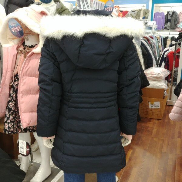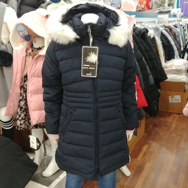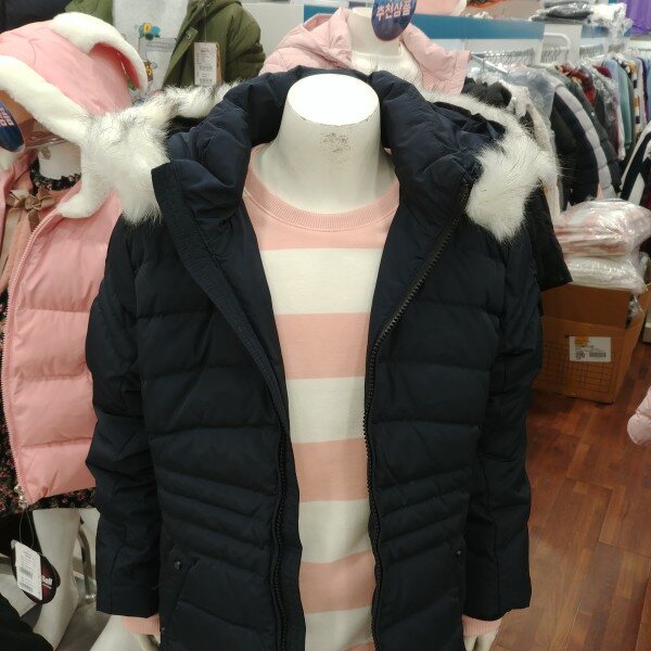 단정한 느낌이 강한 여학생 전용 다운 슬림 점퍼입미다.깊은 네이비 칼라가 좋습니다.