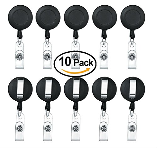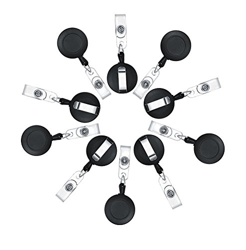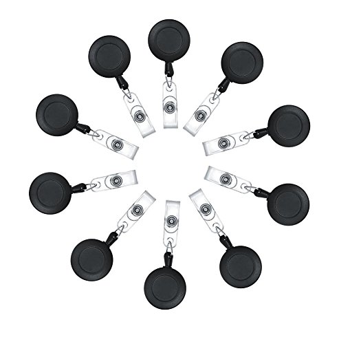 ljdeals Black Matte Retractable Badge Holder ID Badge Reel Clip On Card Holders Pack of 10