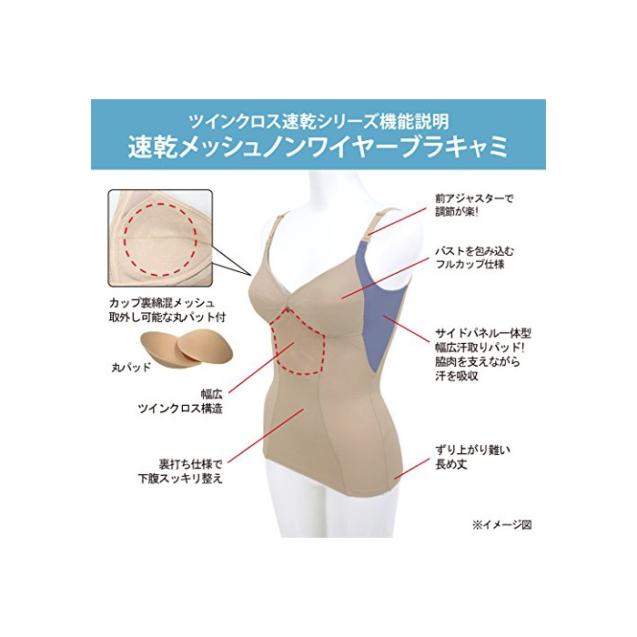 원본상품명: (ツインクロス)twin-cross 速乾メッシュノンワイヤブラキャミ
