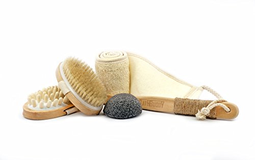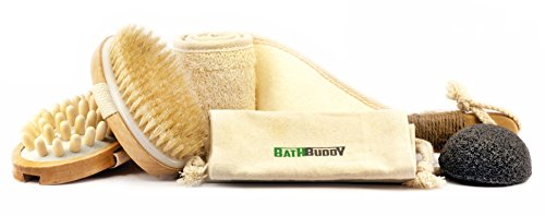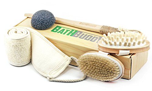 -. Binding : Misc. -. Brand : BathBuddy -. EAN : 0643690876915 -. Feature : TOP QUALITY MATERIALS. The softest TOP QUALITY MATERIALS. The softest natural boar bristle for dry brushes and the best cherry wood were chosen for our dry body brushes. Never body brushing was so simple and relaxing as now! / BANISH CELLULITE, IMPROVE skin tone and MORE with our body brush for cellulite. This is something you can and should be doing daily, even twice a day. / FACIAL CHARCOAL KONJAC SPONGE from 100% NATURAL and ECO friendly root fiber. Doesn't contain any chemicals. Designed to provide MAXIMUM CARE for you facial skin. / 100% NATURAL LOOFAH back scrubber is an ideal solution for all types of skin and exfoliating body scrubbing. The spongy texture is perfect for exfoliating dry skin to keep it smooth and sleek. / COMFORTABLE BAG for all the accessories to carry it in your trip. Just put the bag with BathBuddy dry skin body brush set and back shower brush to your lage and it will be your nice companion during whole trip. -. IsAdultProduct : 0 -. Label : BathBuddy -. Manufacturer : BathBuddy -. ProductGroup : Beauty -. ProductTypeName : BEAUTY -. Publisher : BathBuddy -. Studio : BathBuddy -. Title : Top Quality Bath SPA Set: Dry Brush from Natural Boar Bristle, Massaging Back Brush to Reduce Cellulite Including Konjac Sponge and Exfoliating back scrubber -. UPC : 643690876915