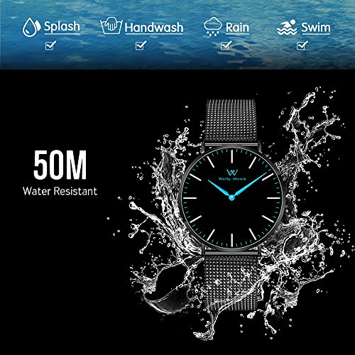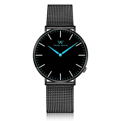 Sophisticated wristwatch with black stainless steel case of 36 millimeters and black mesh strap of 18 millimeters in width. The desirable Classic Washington showcases the achievement of creativity and distinctive minimalistic design. A black round dial of 32 millimeter goes well with black mesh strap. Silver, light blue or red hands become statement pieces. Simplicity and engineering excellence were perfectly integrated into the timepiece. Gorgeous and elegant. This Welly Merck watch is outfitted with a Ronda 762 movement, sapphire crystal, durable all stainless steel 316l, mesh strap and can withstand water damage at depths of up to 3 atmospheres. The most exciting features or best selling points of the watch are minimalist two hands that provide unostentatious and understated lifestyle, 4pm position and super thin that make it comfortable to wear, innovative interchangeable strap that can change the look of the watch in just a few seconds without a tool, sapphire crystal that ensures the hardness and durability of the watch.Feature