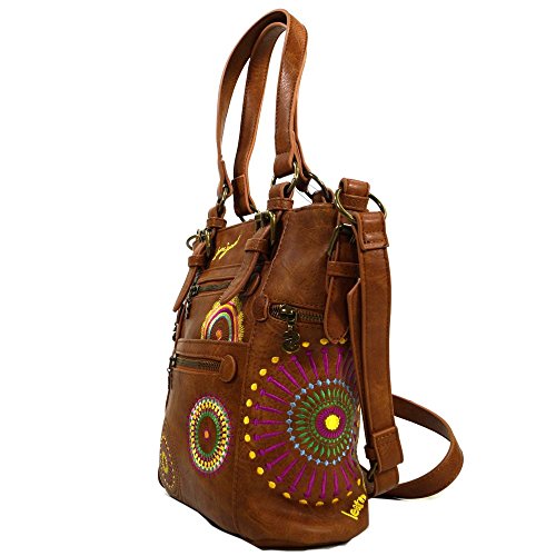 Marke: DesigualBezeichnung: Argentina Mini Audrey BraunAussenmaterial: KunstlederInnenmaterial: StoffFarbe: Cognac-Gelb-Pink-Rosa-Grün-HellblauAußenmaße: 29x11x25 cm (B|T|H)Gewicht: 640 grammAusstattung: