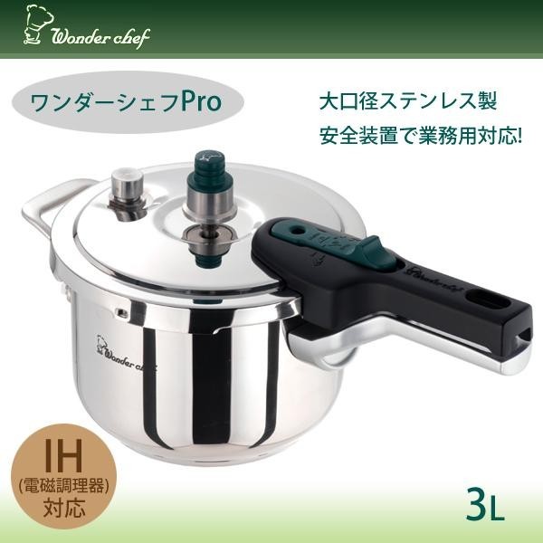 | 仕様 | 容量:3L 対応熱源:200V SG CH・IH、ガス火 食洗機:使用不可 底三層構造 作動圧力:98kpa(約2気圧)※気圧表示は大気圧1に鍋内圧を合わせた数値 水の容量/最高水位線:約2L・豆類線:約1L 最大炊飯量:3合 大豆最大煮量:300g 保証期間:1年 |
