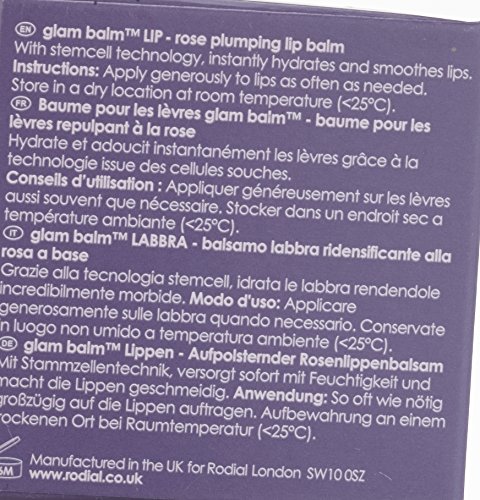 -. Binding : Health and Beauty -. Brand : Rodial -. Color : no color -. EAN : 5060027062318 -. Feature : PhytoCellTec Alp Rose work to increase skin vitality, and creates a barrier against outside aggressions. They also work to protect the skin against climate change / Hyaluronic Filling Spheres are micro injected for instant plumping of lips / Rose Wax nourishes and repairs by boosting skin lipid content and restoring moisture -. IsAdultProduct : 0 -. Label : Rodial -. Manufacturer : Rodial -. Model : SKGLAMBLIPNEW10 -. MPN : SKGLAMBLIPNEW10 -. PackageQuantity : 1 -. PartNumber : SKGLAMBLIPNEW10 -. ProductGroup : Prestige Beauty -. ProductTypeName : BEAUTY -. Publisher : Rodial -. ReleaseDate : 2016-03-19 -. Size : 10g/0.35oz -. Studio : Rodial -. Title : Rodial Stemcell Super-Food Glam Lip Balm, 0.35 fl. oz. -. UPC : 161260269030