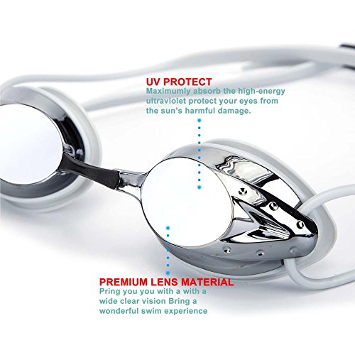 ▼BEST EYE PROTECTION AND CLEAR VISION FOR SWIMMING - This swimming goggles are mirror-coated with the latest anti-fog protection with specially designed, shatterproof lenses to let you have prolonged clear vision. Whether you are racing for a record, swimming for better health or making memories at the swimming pool, these high tech lenses block harmful UV rays, keep fogging to minimum and anti-shatter techonology protects themselves against sudden drops and scratches.