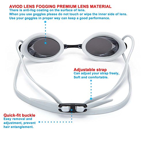 ▼100% UV PROTECTION, ANTI-FOG COATING, ANTI-SHATTER LENSES, MIRROR COATED LENSES - The coated lens using high quality imported PC material can anti-shatter. The lenses are covered with a layer of anti fog coating effective UV protection and protect your eyes from heat and damage of the sunrays, make your vision clearer especially when you swim outdoors. The uv protection swimming goggles to bring you top uv protection. No longer have to worry about the eyes will be burned in the hot sun.