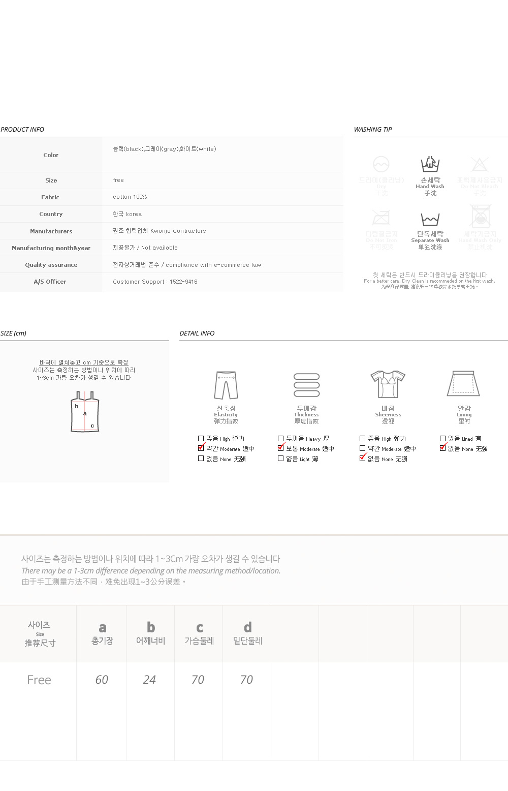 끈나시 타입의 디자인으로 어깨끈을 조절할수 있는 활용성과 실용성이 높은 이너나시입니다 ^^