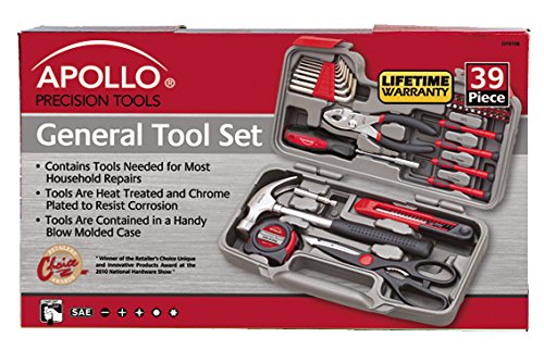 Apollo Tools DT9706 Original 39 Piece General Repair Hand Tool Set with Tool Box Storage Case