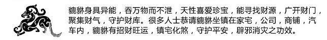 貔貅护主心强,有镇宅辟邪之用。摆放貔貅可令家运好转、好运加强!