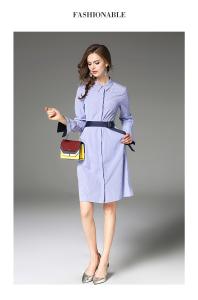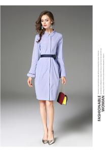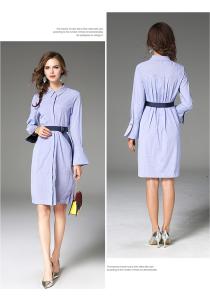 シャツワンピース ウエストマーク 長袖 ストライプ フレア袖 膝上 大人カジュアル 春夏 シャツドレス プチプラ