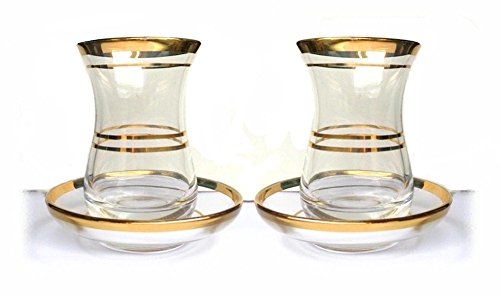 -. Title : Gold Plated Fine Dining Turkish Tea Cup and Saucer, Set of 2 Cups & 2 Saucers