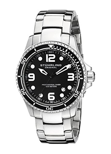-. Binding : Watch -. Brand : Stuhrling Original -. Department : mens -. EAN : 0847988028943 -. Feature : Water-resistant to 200 M (660 feet) / Polished stainless steel round shaped case with black unidirectional ratcheting bezel and screw down crown / Protective Krysterna crystal on front and decorated case back / Black matte finish dial with white luminous numerals, markers and hands with date window at 4 o'clock position -. IsAdultProduct : 0 -. Label : Stuhrling Original -. Manufacturer : Stuhrling Original -. Model : 593.332D11 -. MPN : 593.332D11 -. PackageQuantity : 1 -. PartNumber : 593.332D11 -. ProductGroup : Watch -. ProductTypeName : WATCH -. Publisher : Stuhrling Original -. ReleaseDate : 2013-04-15 -. Studio : Stuhrling Original -. Title : Stuhrling Original Men's 593.332D11 Aquadiver Grand Regatta Swiss Quartz Diver Date Black Watch -. UPC : 847988028943