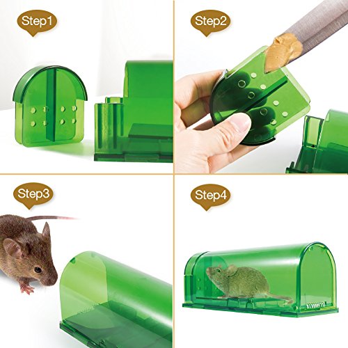 ✅EFFECTIVE: Catcha no kill mouse trap with a spring door that closes once the mouse go inside to eat the bait which you set. Once the door closes, the mouse can't get out until you open it up;