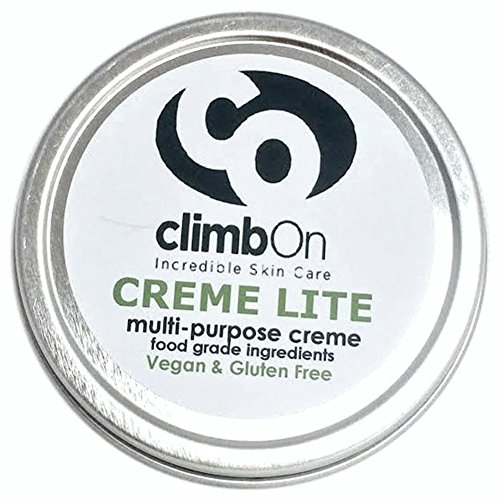 -. Feature : Climb On! Multi-Purpose, Vegan, and Glutan-Free Creme Lite - 1.5 oz / This Light And Easily Absorbable Cream Provides Incredible Skin Care Without Greasy Residue / Silky Smooth Mouisturizer For Your Hands, Face, and Body - All-Natural and Food Grade / Use For Cuts, Scrapes, Blisters, Dry Cracked Skin, Burns, Doggie Pads, Diaper Rash, Chamois Cream, etc. / Manufactured in the USA Using 100% Organic Ingredients. Biodegradable, Non-Toxic, and Chemical Free
