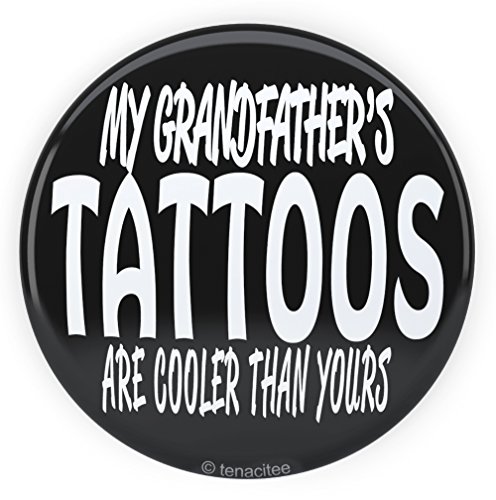 Binding : Apparel Product Description Grandfather's Tattoos 2.25" Button by Tenacitee. Express yourself! Buttons are the perfect way to let the world know how you feel. Our buttons are designed, printed, and handmade at Tenacitee's studio in Oklahoma. Proudly made here in the USA! This 2.25" button has a metal shell with pinback and mylar cover to protect from scratches. Perfect to decorate your shirt, jacket, bag, or put anywhere else you want! It's a great gift or giveaway for parties. 0
