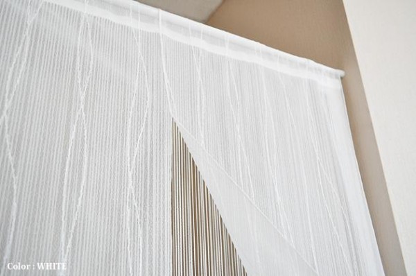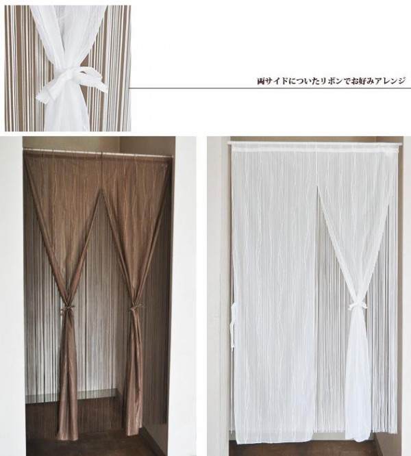 両サイドについたリボンでアレンジができます。透け感が涼しげなのれんです。
