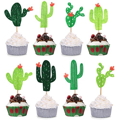 24pcs Cactus Cupcake Toppers Cupcake Picks for Cake Decorations Hawaii Party Favors Tropical Cacti Theme Summer Birthday Party Supplies