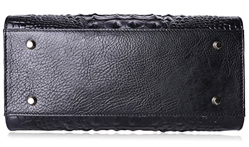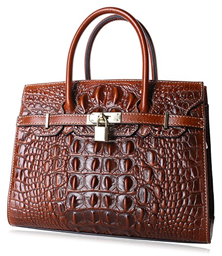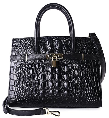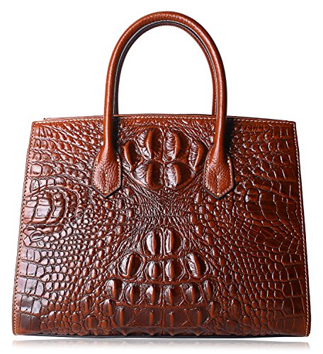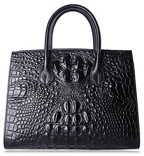 -. Feature : Special Leather with Creative Embossed Crocodile Technology: Import wax oil leather (100% genuine leather) with creative embossed technology , Wax oil leather is one of the high-end leather in the world, Embossed crocodile pattern in the original wax oil leather surface under high temperature, more beautiful than real crocodile leather, and look luxury, elegant; / Stereotype bag Design: Front, back side with inside material make the bag become fixed. Practical and elegant, no matter from which point of view, it presents a very perfect solid line and graceful shape, protect handbag not be out of shape. / Dimensions: L- 12.8 x H- 9.5 x W- 6 inch; handle high 4 inch , with 45 inch length removable shoulder straps;Top zipper closure; fabric lining; Bottom with golden metal rivet protective; / Practical Inside Structure Design: Large Space for storage, 1 zipper pocket in one side, 1 open pocket in another side. Can fit up to 9.7 inch Ipad, mobile phone, wallets, umbrella, etc; / Designed to be carried as leather tote, shoulder, cross body;prefect for work, business, casual ,daily life, party, travel, etc ;Best Holiday Gift for Birthday, Mother's Day, Thanksgiving Day, Women's day, Christmas, New Year etc