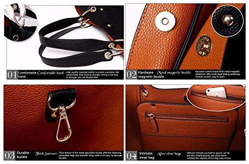 -. Feature : Material: high quality PU leather,Quality material, comfortable feel. / DIMENSIONS: 11.42"L x 11.81"H x 10.23"W, Height of Handle: 8.66". the weight is 2.1 lb.please mind the size before place the order. / Features: There is a removable handle, the handle length is longer, you can put the bag on the shoulder or arm. There is a removable shoulder strap that can be used as a shoulder bag. / Bag structure: There is a small zipper pocket, you can put coins, keys, bank cards and other small items.There is a removable bag, can be used as a separate wallet, can also be placed in the bag. The main bag is no compartment, is a whole, there is a lot of space that can accommodate many items.The magnetic buckle with strong suction force are used to well close the bag. / Bag with artificial leather with the smell, please open it in a ventilated place, two or three days will be dissipated.Accept returns or exchanges if you're not satisfied with it for any reasons. We promise that we can give you a good solution.