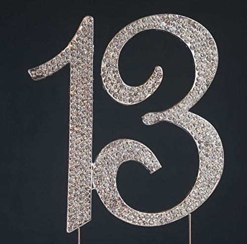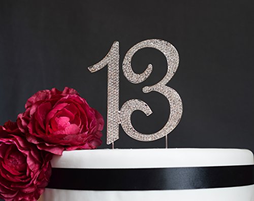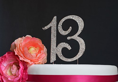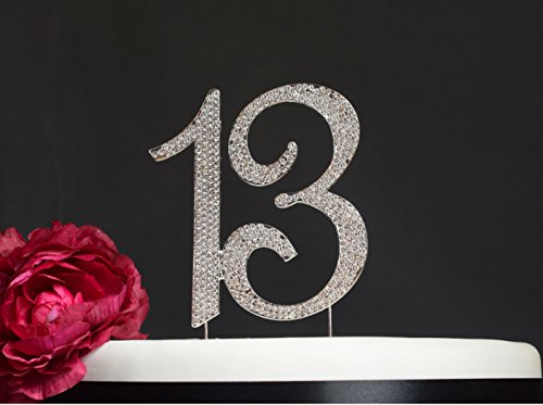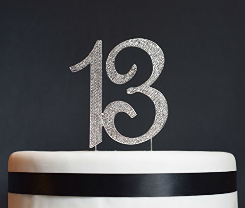 13 Birthday Cake Topper - Premium Sparkly Crystal Rhinestones - Monogram Number Thirteen - 13th Birthday or Anniversary Party Decoration - Crystals Securely Attached - Perfect Keepsake (13 Silver)