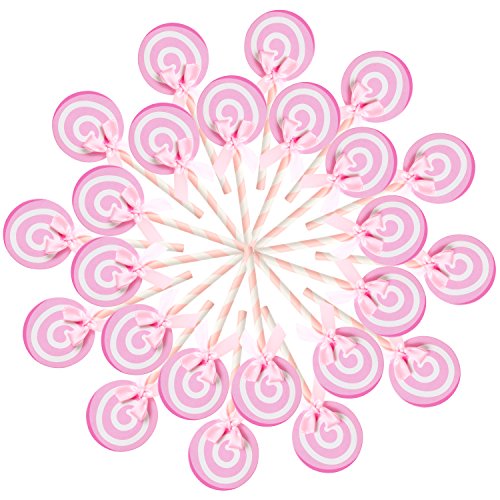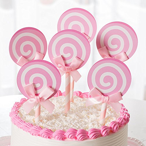 24 PCS Lollypop Bak Cake Cupcake Topper Party Decorations -Pink