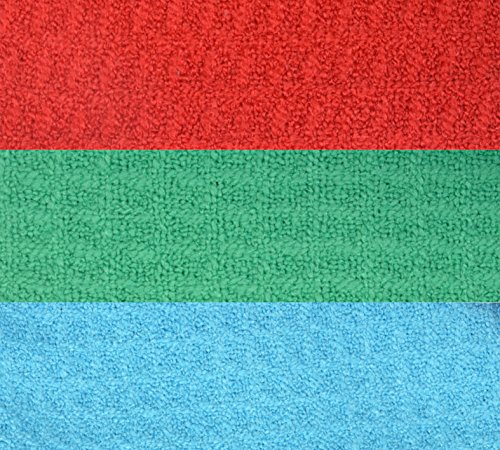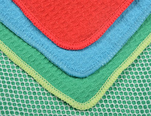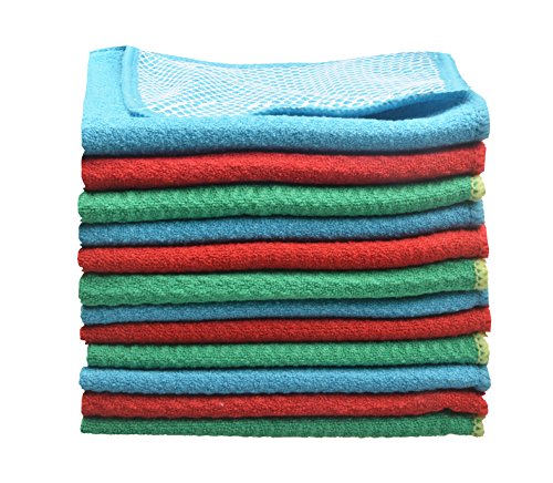 Sinland Microfiber Dish Cloth with Poly Scour Side 12Inch x 12Inch,Assorted Blue/Green/Red 12 Pack