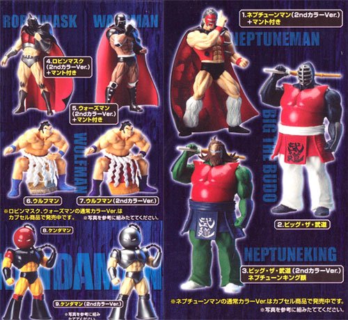ネプチューンマン(2ndカラー)+マント付き ビッグザ武道(アニメカラー) ビッグザ武道(2ndカラー、ネプチューンキング顔) ロビンマスク(2ndカラー) ウォーズマン(2ndカラー)+マント付き ウルフマン(アニメカラー) ウルフマン(2ndカラー) ケンダマン(アニメカラー) ケンダマン(2ndカラー)