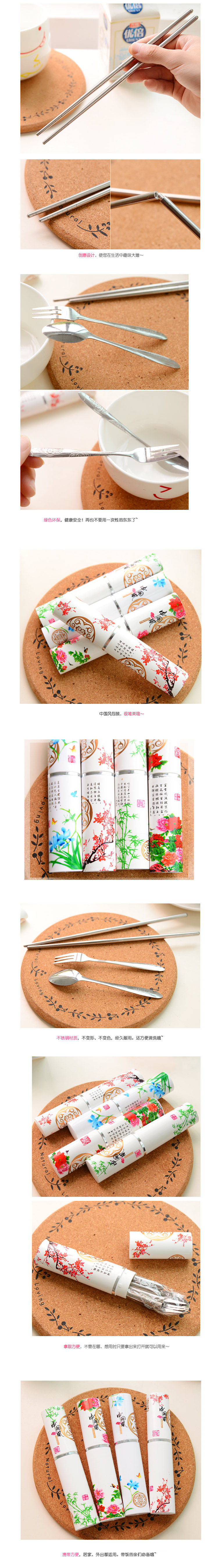 (买1送1)便携餐具不锈钢餐具三件套便携旅行环保套装折叠筷子叉子勺子