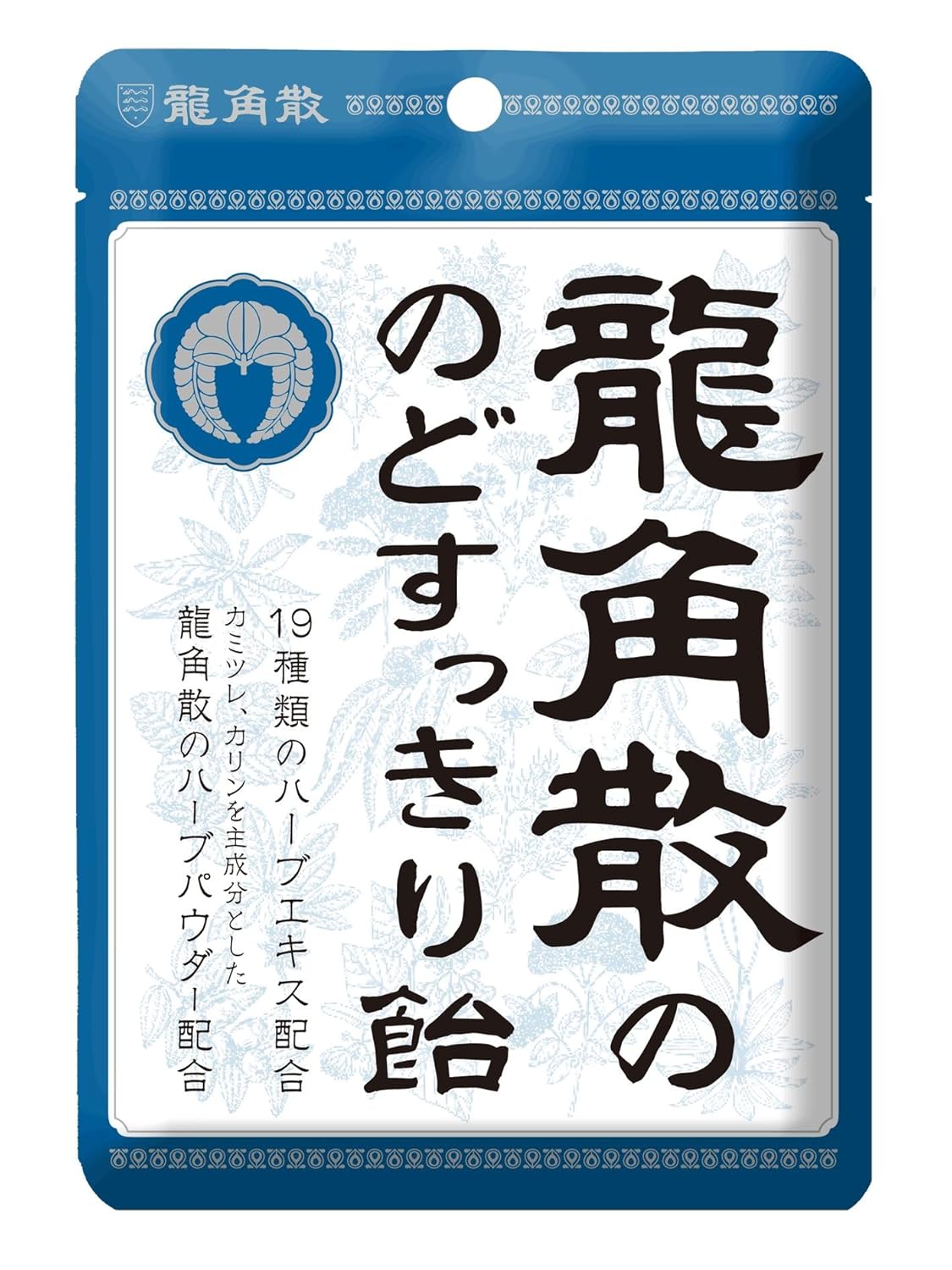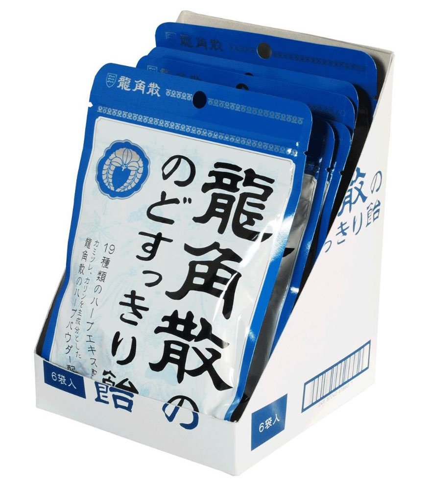 カリン・カミツレ主成分とした龍角散のハーブパウダーと19種類のハーブエキスを飴に直接練り込んでいるので、舐めはじめから舐め終わりまで味と香りが長く続くのど飴です。のどを使い過ぎた時、のどの乾燥を感じた時、気分をリフレッシュしたい時、ドライブの時、鼻づまりなどの不快時にお薦めです。チャックシールつきの袋入りですので、持ち運びや少し舐めたいときにも便利です。