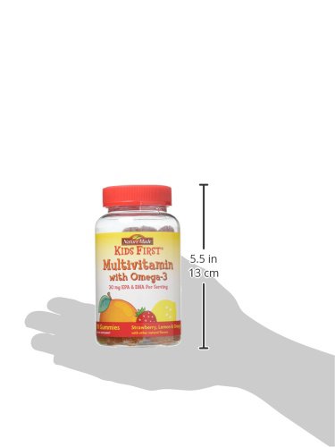 Nature Made Kids First Multivitamin with Omega-3 Gummies help start a lifetime of healthy habits. These gummy vitamins for kids contain 11 essential nutrients, including vitamins A, C, D and E, B vitamins, zinc and omega-3s EPA and DHA. Easy to chew, they come in great-tasting, all-natural fruit flavors your kids will love.Feature