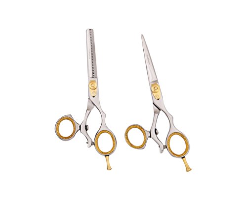 Professional Salon Shears Hairdressing Set Cutting+Thinning Barber Scissors Swivel Rings To Comfort Performance Cutting Golden Screw