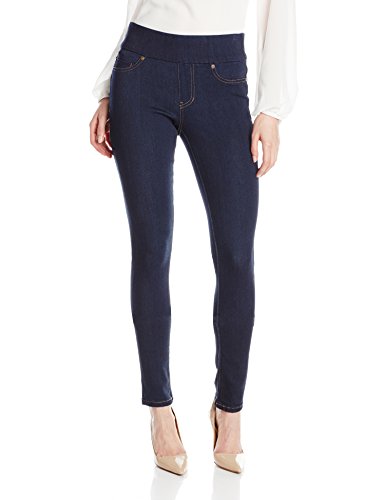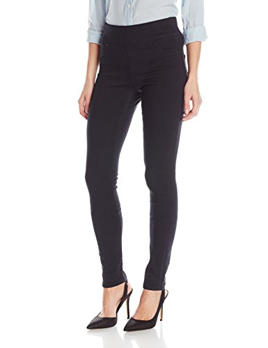 Skinny-fit jegging in hyper-stretch denim featuring faux front pockets and wide waistband