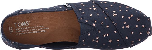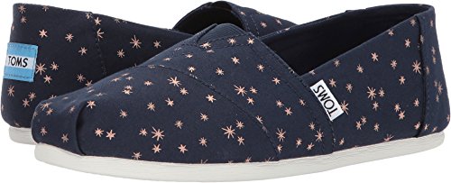 Binding : Apparel Product Description Like glitter, but without the all-over-everything problem. Navy light burst metallic printed canvas upper. Vegan. Elastic "v" for easy on/off. Molded removable insole. Rubber outsole for traction. With every pair of shoes you purchase, TOMS will give a new pair of shoes to a child in need. One for One. Navy Light Burst Women's Classics Gift wrap eligible 0