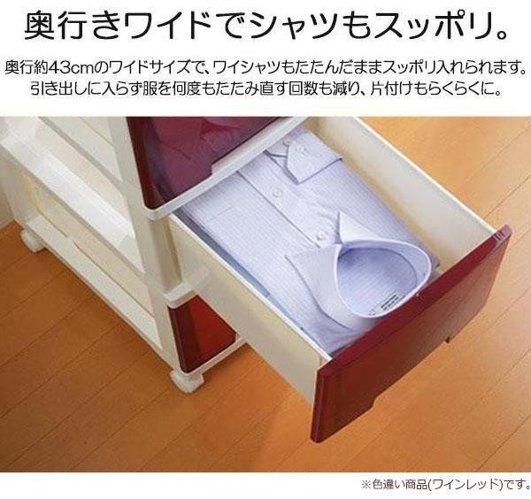 | ちょっとしたインテリアにもなる、おしゃれなチェスト!!奥行が広めなので、たたんだYシャツもすっぽり収納いただけます。工具不要で組み立てができます。キャスター付きだからお掃除する時も便利です♪ |