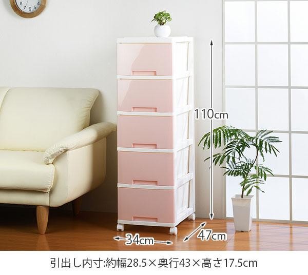 | サイズ | 本体:約幅34×奥行47×高さ110cm(キャスター含む)、引出し内寸:約幅28.5×奥行43×高さ17.5cm 個装サイズ:49×36×55cm |