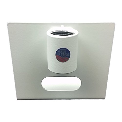 -. Feature : Universal Camera Ceiling Mount - Made in Pennsylvania, USA / Rear and bottom cable exit ports. Mounts either uP.R.Ight or upside down. / Fits most cameras with footP.R.Int 5.75"w x 6.5"d and 1/4-20 mounting screw / Mounts to std 1"NPT pipe (pipe and pipe hardware e.g. ceiling flange NOT included) / Adjustable mounting slot for 1/4-20 screw (forward/backward)